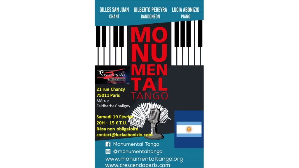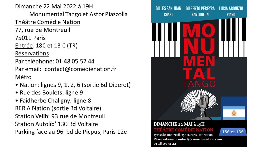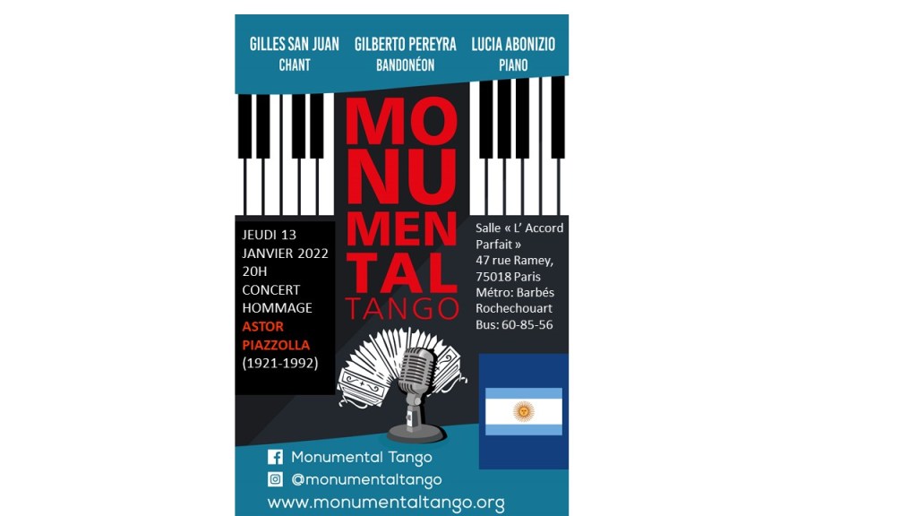 JEUDI 13 JANVIER 2022 – MONUMENTAL TANGO et ASTOR PIAZZOLLA